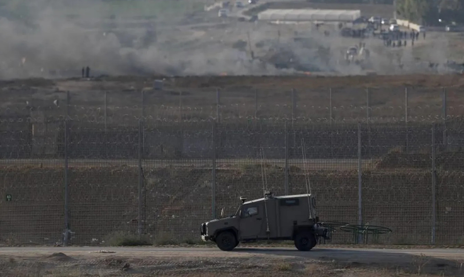 Image : Un véhicule de l'armée israélienne patrouille à la frontière avec la bande de Gaza pendant les affrontements entre les manifestants palestiniens et les troupes israéliennes près de Nahal Oz, à la frontière avec la bande de Gaza, le 22 septembre 2023. (Crédit photo : EPA)
