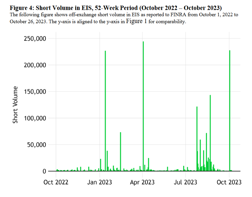 Similarly, on October 2, the shorting of the MSCI Israel Exchange Traded Fund (ETF), a passive investment vehicle tracking the performance of the Israeli stock exchange overall, "suddenly, and significantly, spiked." For context, the authors note this was the 30th-highest daily shorting volume ever experienced by the ETF over the 3,570 trading days leading up to Operation Al-Aqsa Flood. In other words, it was one of the biggest bets on poor Israeli stock exchange performance since 2009.