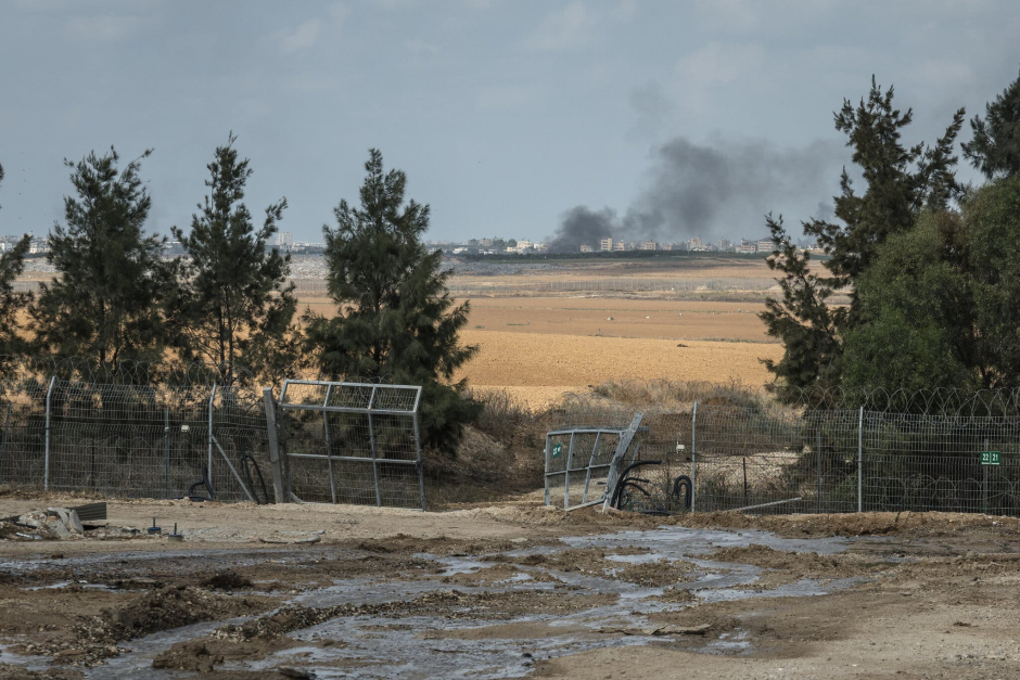 La barrière de sécurité franchie dans le village de Kfar Azza, en Israël, trois jours après son attaque par le Hamas.Crédit...Sergey Ponomarev pour le New York Times