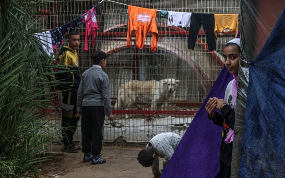 Au zoo de Rafah, des dizaines de personnes déplacées et affamées vivent désormais dans l'enceinte du zoo, certaines dans des maisons de fortune construites avec des bâches en plastique.