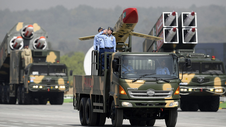 Des véhicules militaires pakistanais transportant un système de missiles participent au défilé militaire pour marquer la fête nationale du Pakistan à Islamabad, le 25 mars 2021 (photo d'illustration).