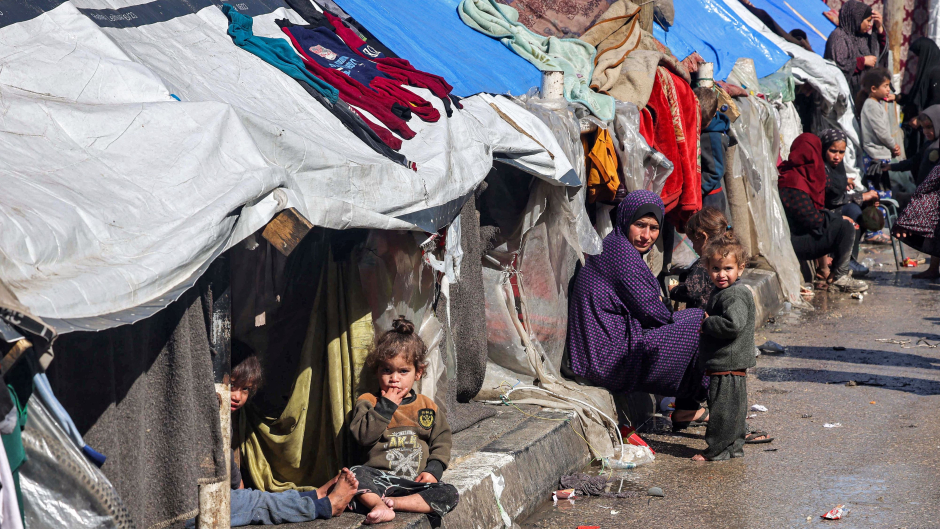 Femmes et enfants palestiniens déplacées, Rafah, sud de la bande de Gaza (8 février 2024).