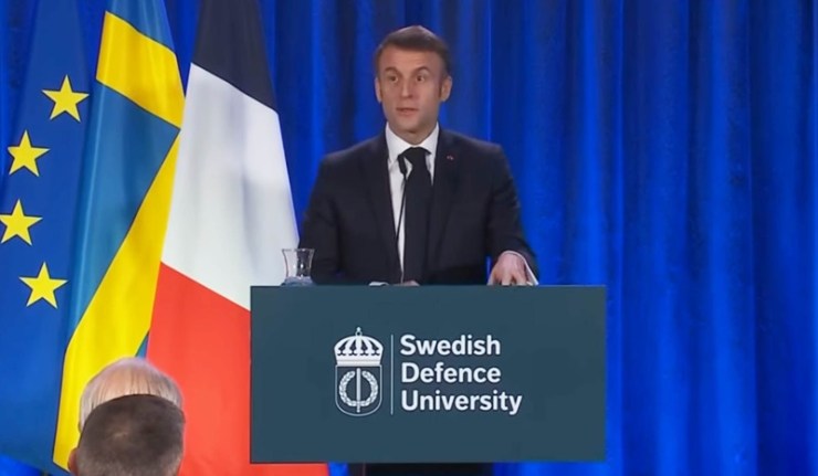Le 30 janvier 2024, lors de sa visite d'État en Suède, Emmanuel Macron a prononcé un discours à l'université de la défense suédoise, suscitant des inquiétudes. S'exprimant sur la situation en Ukraine, il a évoqué une disposition à tout mettre en œuvre pour soutenir la victoire de ce pays face à la Russie, allant jusqu'à évoquer la mise à disposition de la puissance nucléaire française pour l'Europe.