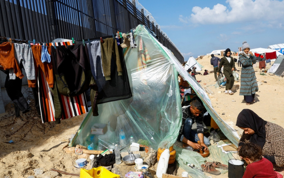 Des images satellites diffusées jeudi 15 février montrent la construction d'un mur de béton le long de la frontière. Le Wall Street Journal a rapporté que les autorités construisaient une « enceinte murée » d'environ 20,719 km2 pour accueillir jusqu'à 100 000 Palestiniens. Un grand nombre de tentes ont été livrées sur le site, toujours selon le quotidien.
