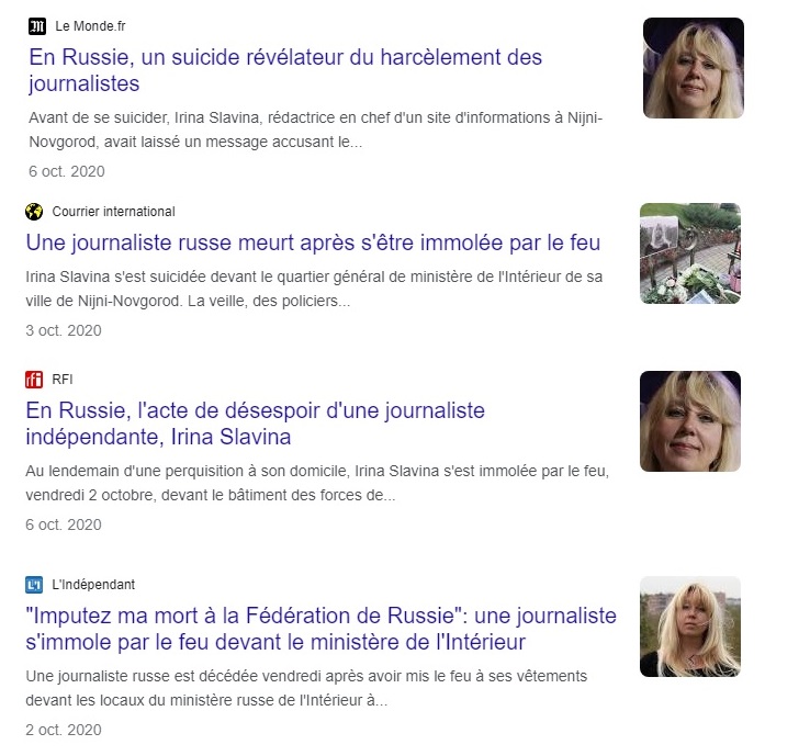 Le journaliste compare ensuite ce traitement douteux avec celui que les mêmes médias avaient réservé au suicide politique d'Irina Slavina à Moscou : « Lorsque la journaliste russe, Irina Slavina, s'est immolée par le feu en 2020, le New York Times a bien médiatisé qu'il s'agissait d'un 'acte de protestation contre le gouvernement de Vladimir Poutine'. »