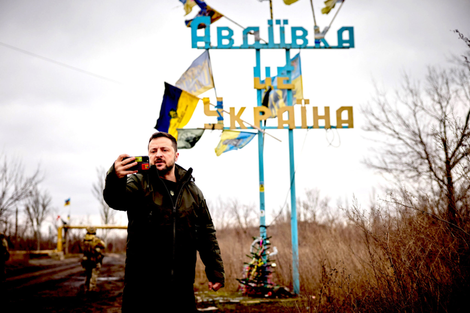 Le président ukrainien Volodymyr Zelensky en visite à Avdiivka le 29 décembre 2023. (Président de l'Ukraine, Wikimedia Commons, CC0)