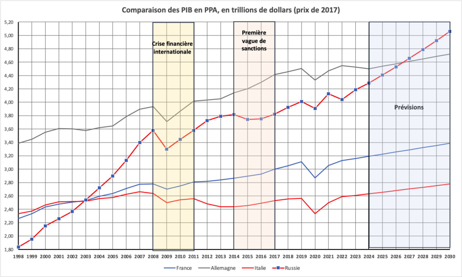 Mais, le Ministre des Affaires Étrangères, M. Stéphane Séjourné, n'a visiblement pas voulu être en reste sur le Premier ministre 4. Il a exprimé ses « doutes » quant aux résultats de l'économie russe. Ignore-t-il que les résultats pour 2022 et 2023 -1,2% en 2022 et +3,0% à +3,6% en 2023) ont été validés par une organisation internationale qui s'appelle le FMI 5, et qu'ils correspondent à l'avis de très nombreux économistes ? Sous-entend-il que le FMI serait contrôlé par les russes, voire - horresco referens - pro-Poutine ?