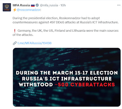 Ou encore, que dire des DOS attaques menées contre le système électoral russe :