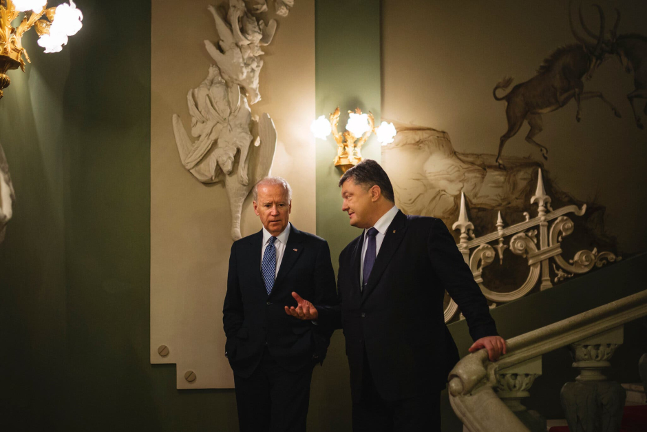 Petro Porochenko, alors président de l'Ukraine, à droite, et Joseph R. Biden Jr, alors vice-président des États-Unis, lors d'une réunion à Kiev en 2015.Credit...Pool photo by Mikhail Palinchak