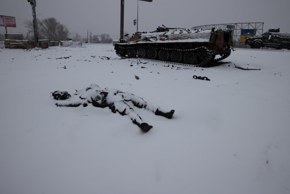 Un soldat russe mort à Kharkiv le lendemain de l'invasion de 2022...Crédit...Tyler Hicks/The New York Times