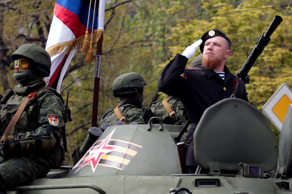 Le commandant rebelle pro-russe Arseny Pavlov, connu sous le nom de « Motorola », salue lors d'une parade militaire à Donetsk, dans l'est de l'Ukraine, en 2016.Crédit...Oleksii Filippov/Agence France-Presse - Getty Images