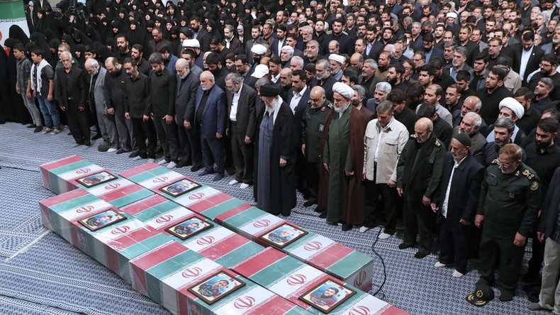 L'ayatollah Khamenei le 4 avril aux funérailles à Téhéran des soldats des Gardiens de la révolution tués le 1er avril dans la frappe imputée à Israël contre la section consulaire de l'ambassade d'Iran en Syrie (image d'illustration).
