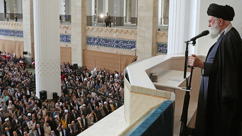 L'ayatollah Ali Khamenei le 10 avril pendant la prière de l'Aïd el-Fitr à Téhéran.