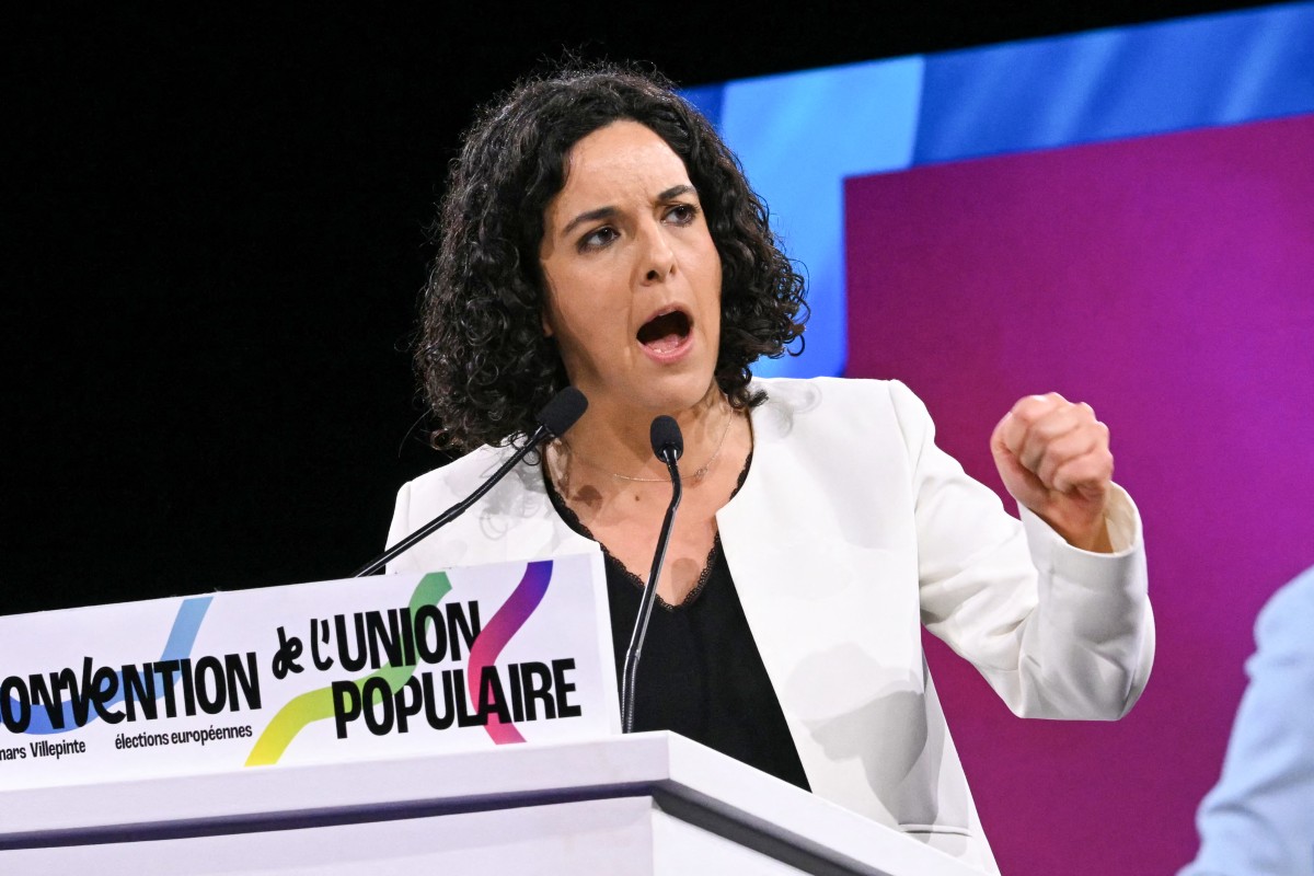 Manon Aubry, la cheffe de liste électorale du parti de la gauche française "La France Insoumise" (LFI) pour les prochaines élections du Parlement européen en juin et la députée européenne