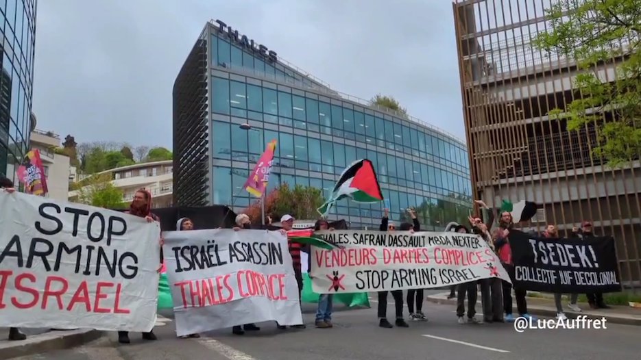 Blocage à Paris ce mardi matin de l'entrée et le passage logistique de l'entreprise Thales, complice du génocide à Gaza