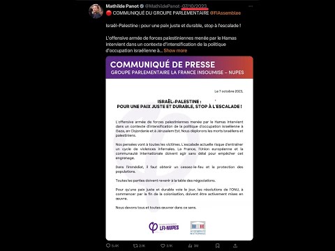 La simple lecture du communiqué du groupe parlementaire LFI le 7 octobre démontre l'absurdité de l'accusation «d'apologie du terrorisme». La volonté d'intimider et d'empêcher la libre paroles est plus qu'évidente.