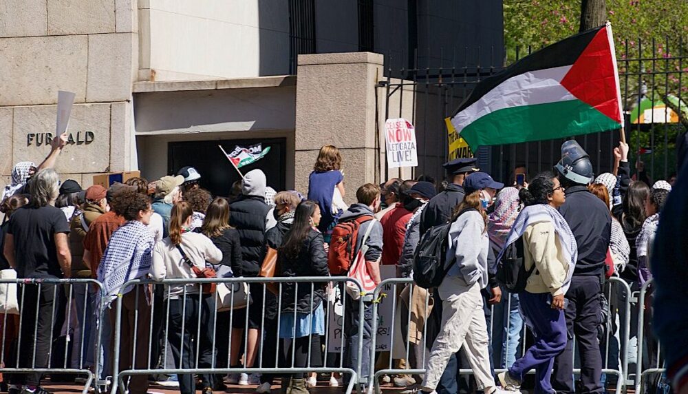 Manifestations à l'université de Columbia et aux alentours en soutien à la Palestine et contre l'occupation israélienne, le 22 avril 2024. (SWinxy/Wikimédia Commons)