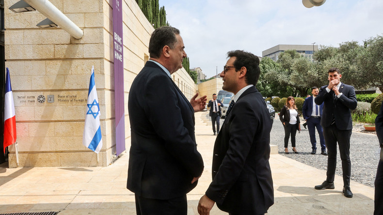 Stéphane Séjourné avec son homologue israélien Israël Katz à Jérusalem le 30 avril 2024.