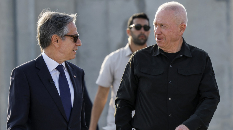 Antony Blinken et Yoav Gallant, ministre israélien de la Défense, en Israël le 1er mai.