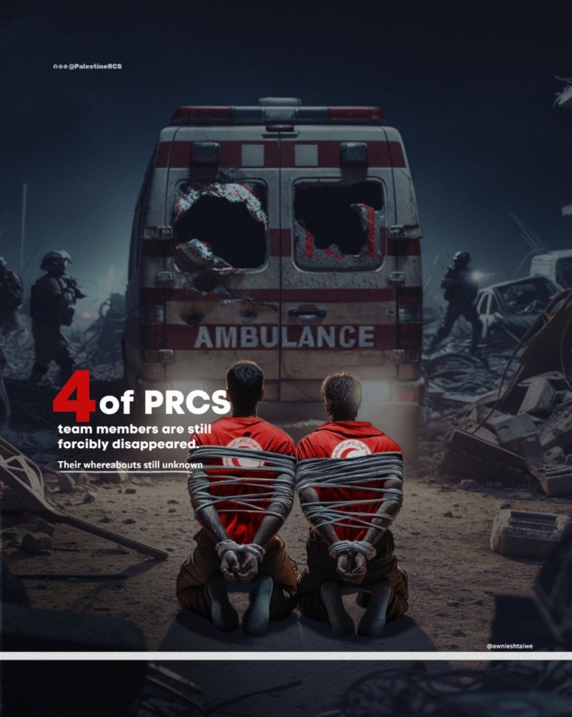 Mais quatre membres des équipes du PRCS restent détenus par l'occupation, et leur sort est actuellement inconnu. Les bombardements de l'occupation israélienne visent le siège du Croissant-Rouge palestinien dans la région de Khirbet al-Adas, au nord de Rafah.
