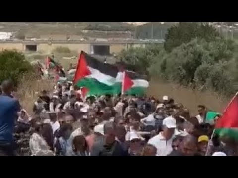 Les Palestiniens d'Israel marchent vers les sites des villages d'avant 1948 de Hawsha et Kasyer marquant le 76e anniversaire de la Nakba palestinienne en cours.