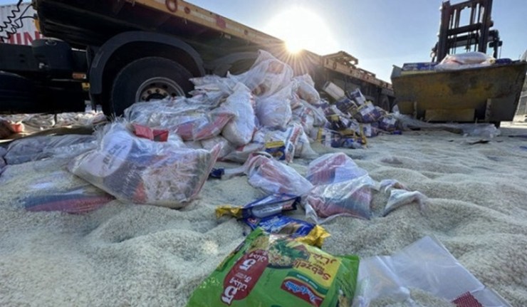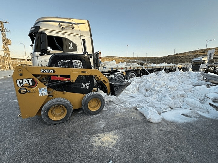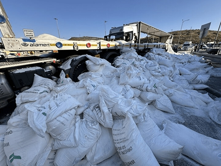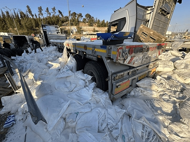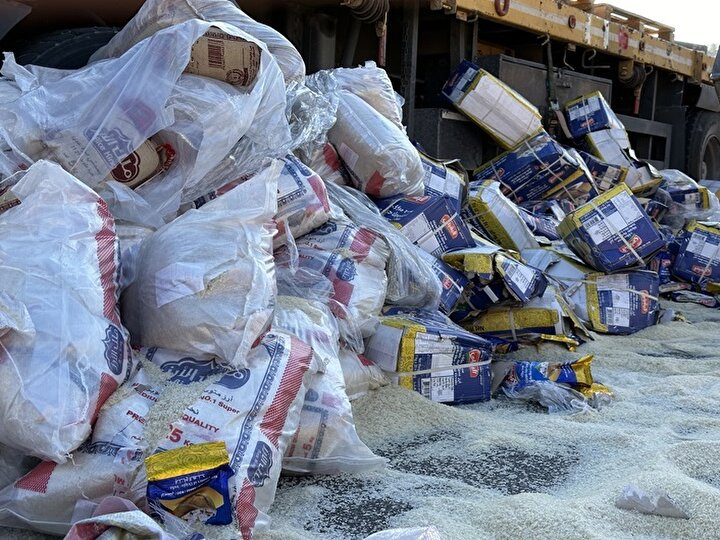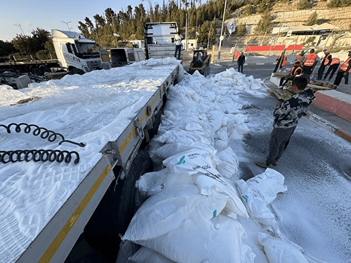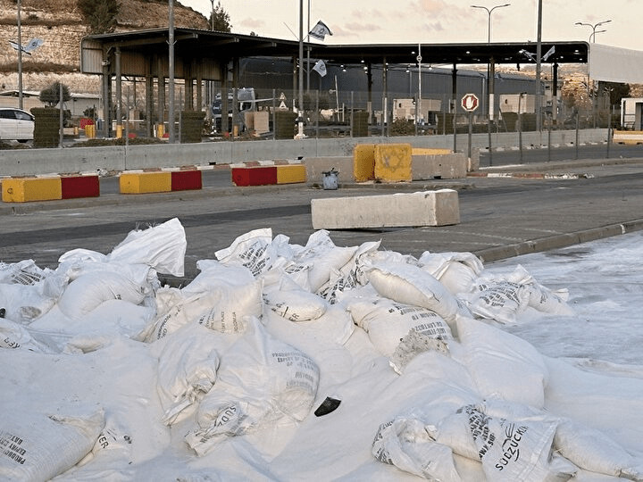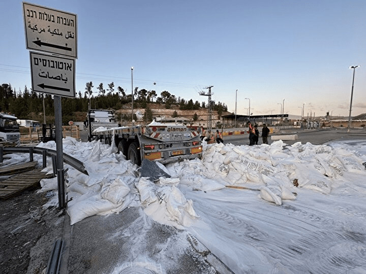 Ces fournitures étaient destinées à aider les Palestiniens dans le besoin dans la bande de Gaza. Les colons ont arrêté les camions en route vers Gaza et ont vidé leur cargaison sur la route.
