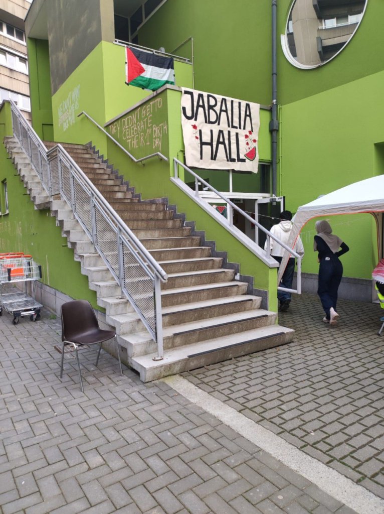 Al'université VUB de Bruxelles les étudiants ont baptisé l'un des halls « Jabalia Hall, » en solidarité avec le camp de réfugiés bombardée de manière incessante depuis des jours