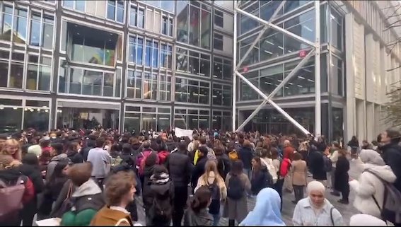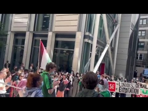 Les étudiants et les professeurs de la London School of Economics se rassemblent pour soutenir le campement de solidarité avec la Palestine à l'Universté et les appels au désinvestissement de l'Etat génocidaire