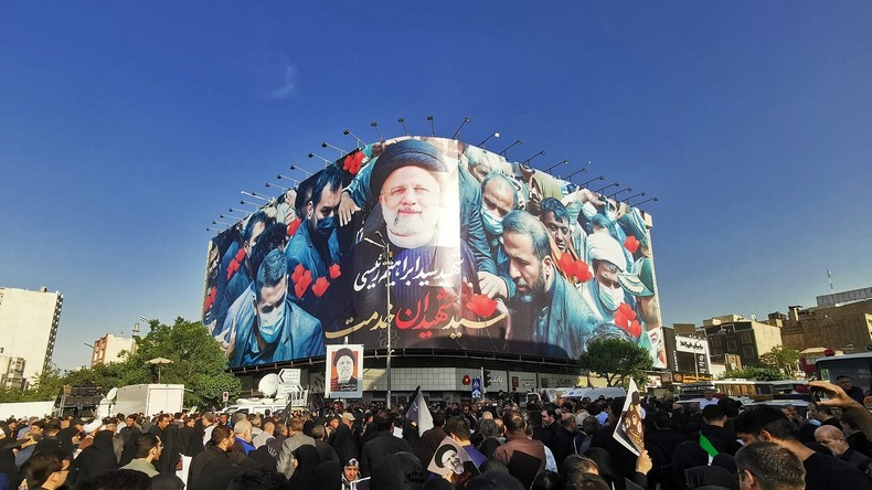 Des centaines de milliers d'Iraniens ont rendu hommage à Ebrahim Raïssi en brandissant son portrait, notamment dans sa ville natale de Mashhad. Symbole de deuil dans les traditions chiites, de nombreux drapeaux noirs étaient également présents.