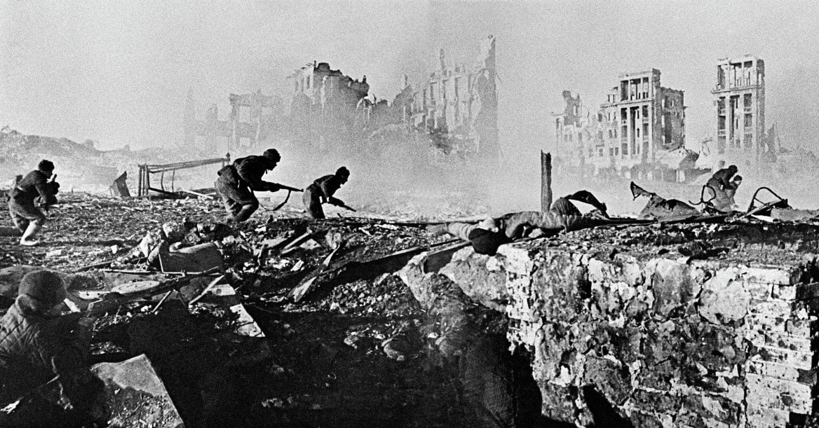 L'initiative appartient à l'Allemagne au cours de l'été 42. Tant en Union soviétique qu'au sud de la Méditerranée, ses troupes avancent vers le Moyen-Orient. Le mythe le plus répété concerne l'affrontement le plus long et le plus acharné des guerres du IIIe Reich. Non, ce n'est pas son nom qui vaut à Stalingrad d'être au centre de la grande bataille de la Volga, qui fera entre un et deux millions de morts en 200 jours.