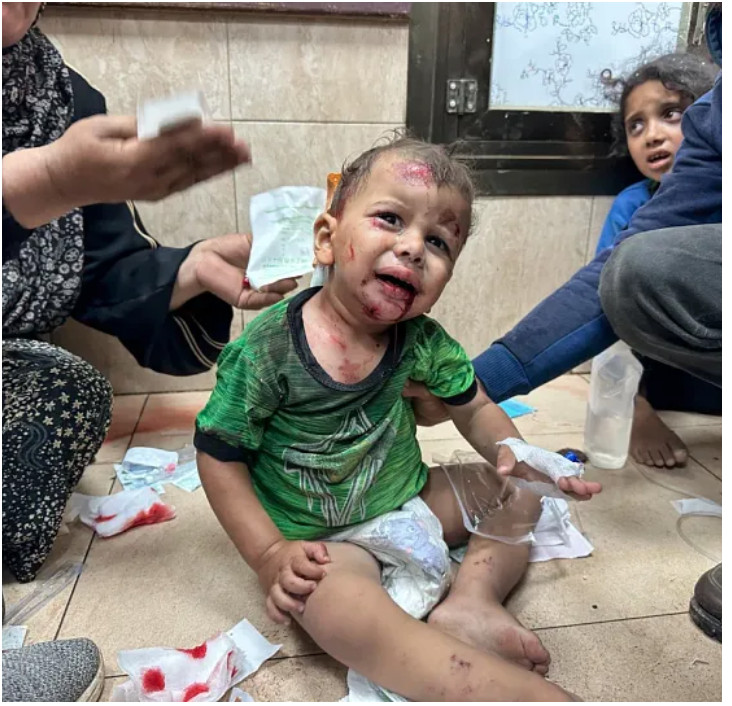 Beaucoup de femmes et d'enfants blessés ont été transportés à l'hôpital al-Aqsa dans des charrettes tirées par des animaux & des véhicules de particuliers, en raison de la situation désastreuse du système de santé.