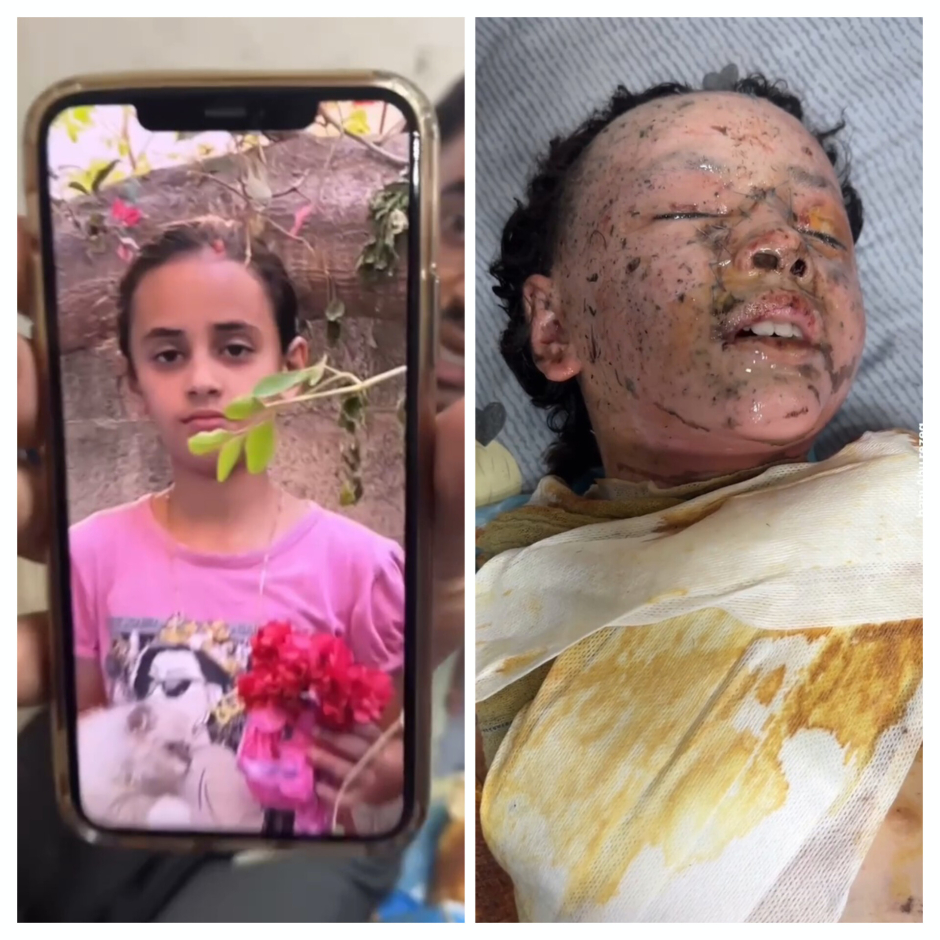 Ainsi, Hanan Aql, est allée acheter des bonbons, mais l'occupant a bombardé l'endroit et elle se trouvait et elle a été gravement brûlée au visage.