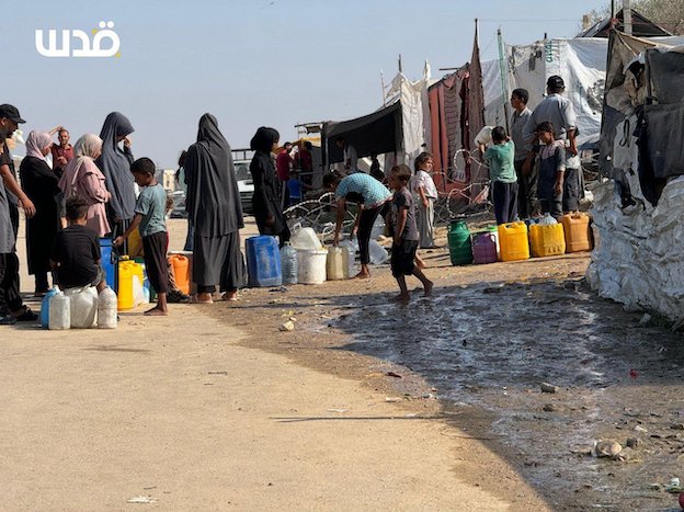 Les Palestiniens déplacés de la banlieue de Khan Younis sont confrontés à d'extrêmes difficultés d'accès à l'eau, exacerbées par le manque de services et d'infrastructures de base dans la région. Ce défi est aggravé par le blocus inhumain imposé par Israël et ses attaques contre toutes les stations de distribution d'eau de la bande de Gaza.