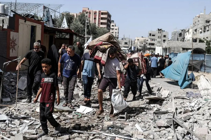 Que dire de la destruction de 70 % de l'ensemble de la bande de Gaza ? L'assassinat de centaines d'universitaires, de médecins et de journalistes ? L'effacement de familles entières des registres d'état civil ? La fermeture de ses sept portes d'accès ? La mort par la faim de celles et de ceux qui refusent de partir ou de mourir ?