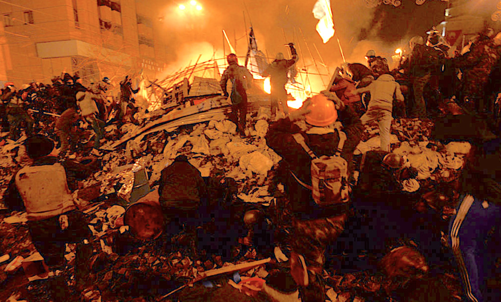 Affrontements à Kiev lors du coup d'État de février 2014. (Mstyslav Tchernov/Unframe/http://www.unframe.com/Wikimedia)