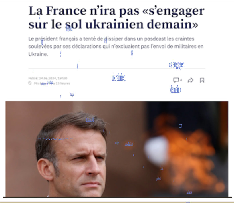Ainsi, après avoir plus d'une fois affirmé en choeur avec le ministre de la Défense que la France se préparait à envoyer des militaires français, officiellement cette fois, en Ukraine, sans oser dire qu'ils soient engagés dans le combat contre l'armée russe, Macron fait une déclaration – tout aussi floue, mais devant rassurer les Français avant les élections législatives.
