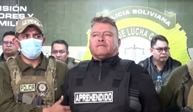 Le général Zúñiga, putschiste en Bolivie et soutenu par la CIA, est exposé menotté.