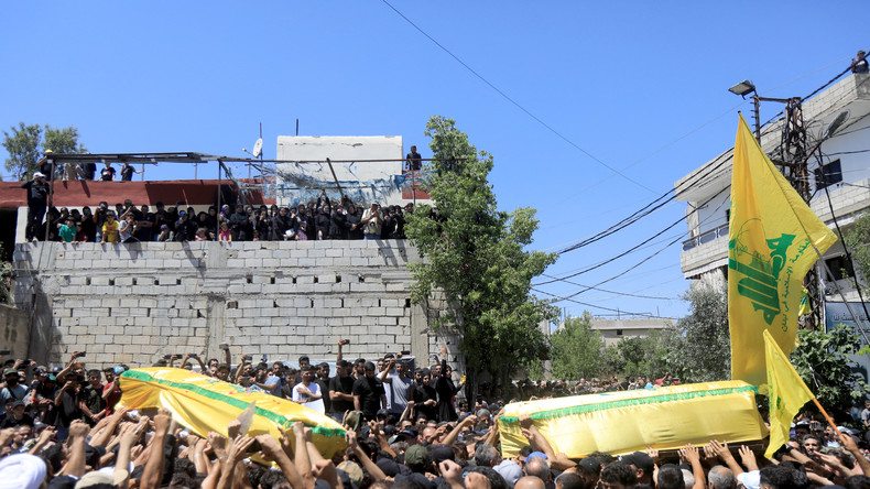 Funérailles de plusieurs membres du Hezbollah dans le sud du Liban le 29 juin.