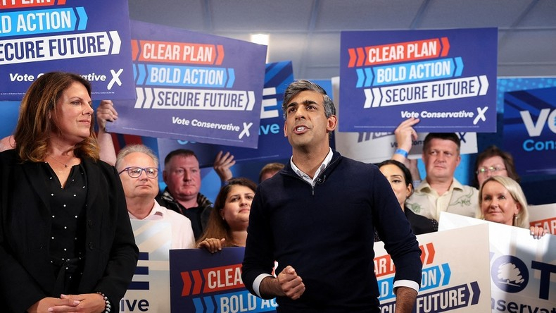 Selon le dernier sondage du portail YouGov la veille des élections, le parti travailliste, mené par Keir Starmer, est proche de remporter une victoire historique. Sa future majorité au parlement pourrait n'avoir été surpassée que par le résultat du Labour sous Tony Blair en 1997. YouGov estime que les travaillistes pourraient obtenir 431 sièges à la Chambre de Communes. Les conservateurs, de leur côté, pourraient reculer de 270 sièges et devoir se contenter de 102 places. Les poids lourds du parti, comme l'actuel ministre des Finances Jeremy Hunt, voire même le Premier ministre, risquent d'être anéantis par le vote.