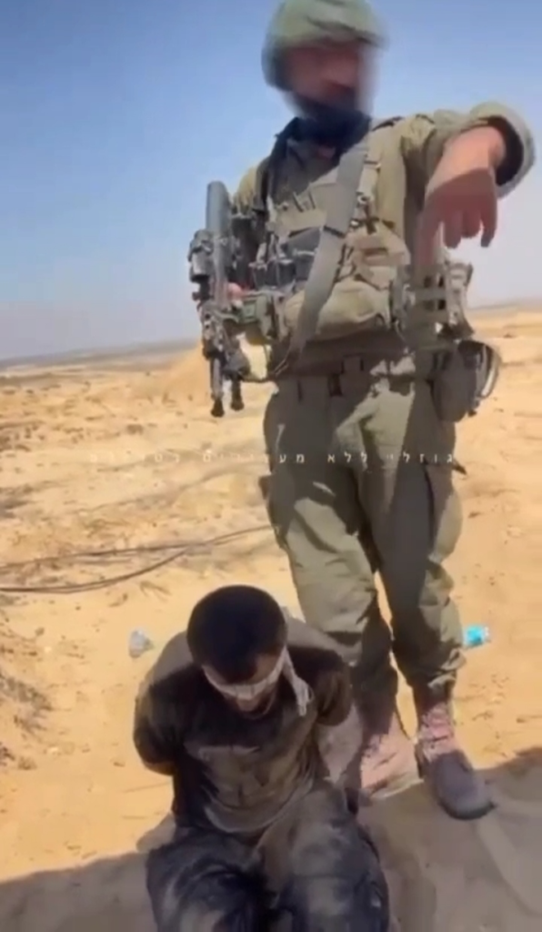 Les soldats de l'occupation israélienne se filment en train d'abuser des civils palestiniens qu'ils avaient kidnappés à Gaza, les montrant menottés et les yeux bandés.
