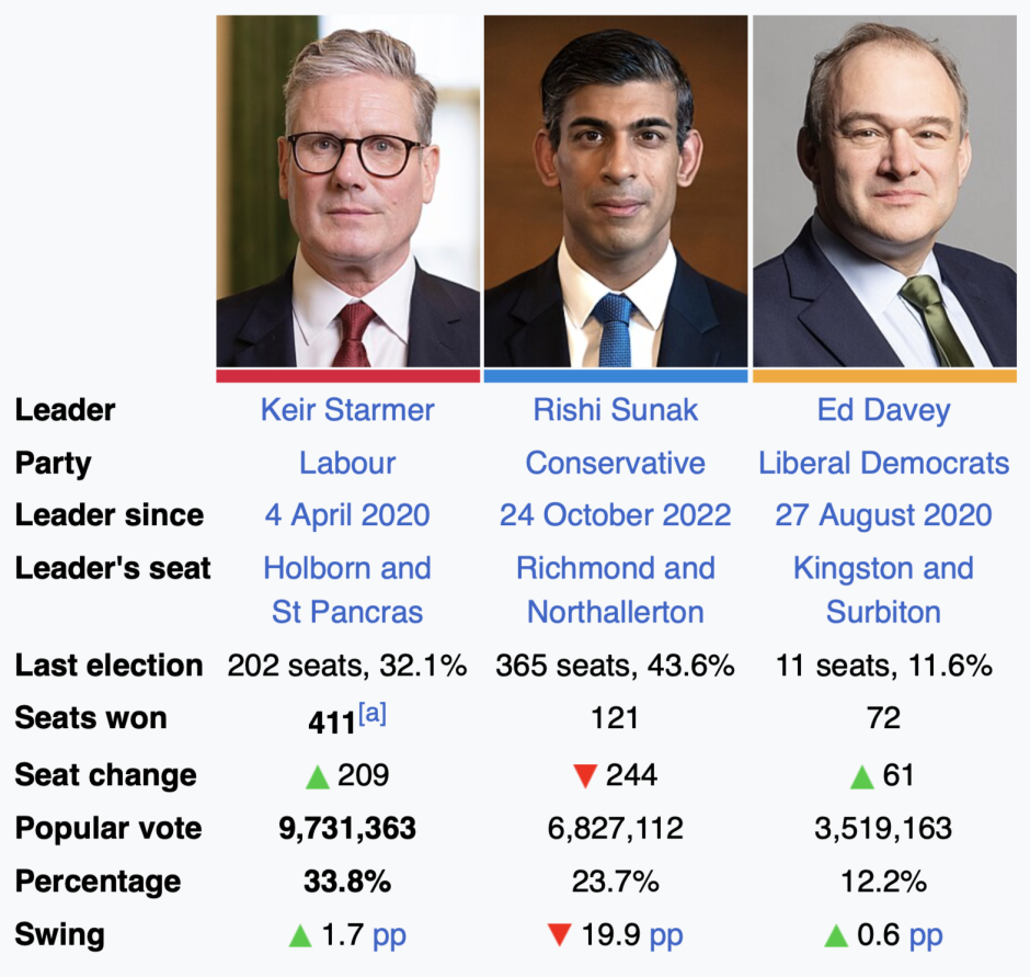 Toute une brigade de conservateurs de haut niveau a subi une défaite. La chef de la Chambre des communes Penny Mordaunt a perdu son siège, tout comme le secrétaire à la Défense Grant Shapps. Cette relique seigneuriale de la tradition des privilège conservateurs, Sir Jacob Rees-Mogg, a également été évincé de son siège. Les libéraux-démocrates ont fait d'énormes percées dans le territoire conservateur traditionnel, remportant des sièges détenus par deux anciens premiers ministres – David Cameron et Theresa May.