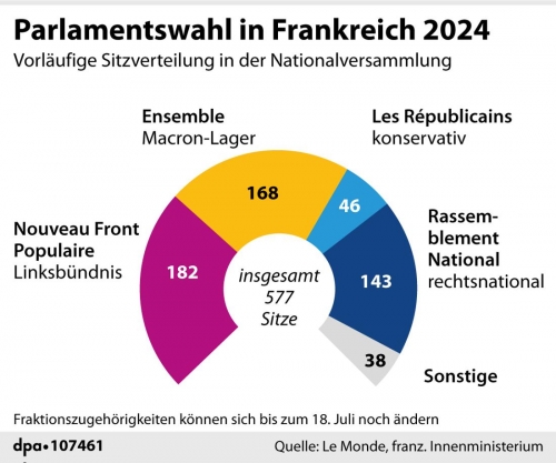 Le parti le plus plébiscité au second tour des élections législatives françaises est de loin le Rassemblement national de Marine Le Pen et Jordan Bardella: 8,7 millions de voix. Si l'on y ajoute les 1,3 millions de voix des Républicains de Ciotti, alliance perfidement qualifiée par le service des élections du gouvernement d'"union de l'extrême droite" (en tant que telle, pour ne pas mâcher ses mots) et favorables au soutien des listes du RN, le chiffre global s'élève à plus de 10 millions de voix. Les sièges déjà enlevés au premier tour ne sont pas comptabilisés ici. Cependant, en regardant le tableau officiel des résultats du second tour, on constate que les 8,7 millions de voix du RN ne se sont traduites que par 88 sièges, tandis que les 7 millions de l'ultra-gauche ont abouti à 146 sièges. De même, les 6,3 millions du groupe de Macron se sont traduits par 148 sièges. Au final, en intégrant les sièges déjà attribués au premier tour, l'Assemblée française se retrouve avec une majorité d'extrême gauche (le Nouveau Front populaire de Mélenchon) avec 178 sièges, un deuxième groupe macroniste avec 150 sièges, et, en troisième position, le RN de Le Pen avec 143 sièges; en quatrième position Les Républicains (centre-droit) avec 39 sièges, plus d'autres groupes mineurs. En d'autres termes, le parti qui a obtenu le plus de voix se retrouve en troisième position en termes de représentation. La distorsion du vote lorsqu'il est traduit en sièges est évidente.