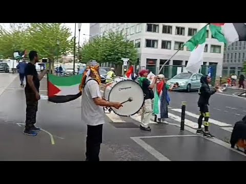 Manifestation lundi 15 juillet devant le COJO, alors qu'au moins 300 sportifs palestiniens ont été assassinés par Israël depuis le 8 octobre, selon la fédération palestinienne des sports.