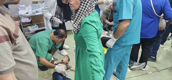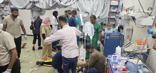 Les blessés sont transportés à l'hôpital Nasser de Khan Younès suite au massacre meurtrier israélien d'al-Mawasi.