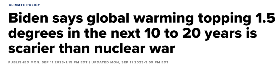 Biden se contente de hausser les épaules. Il pense que c'est le réchauffement climatique [Global Warming] et non la guerre nucléaire qui constitue la [véritable] «menace existentielle».