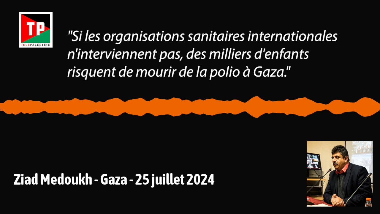 En plus de la famine et des bombardements, les Palestiniens de Gaza font désormais face à une nouvelle menace: une épidémie de poliomyélite, causée par l'absence de produits d'hygiène, les eaux usées et la promiscuité des déplacés. Cette épidémie prédite par l'Organisation Mondiale de la Santé pourrait causer la mort de milliers de Palestiniens, principalement des enfants.