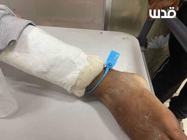 Comme le montre l'image, les forces d'occupation israéliennes utilisent des étiquettes en plastique numérotées, qu'elles fixent aux corps des détenus palestiniens et traitent comme de simples numéros.