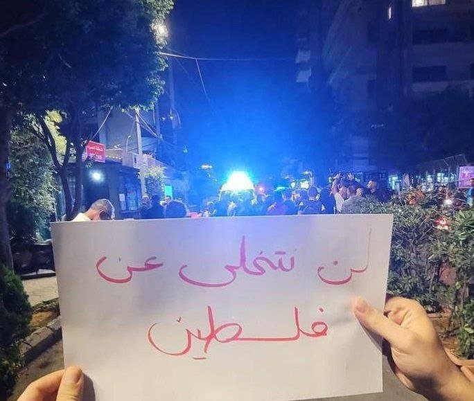 Mercredi soir, des manifestants sont sortis spontanément dans les rues de la capitale libanaise, en arborant ce message : « Nous n'abandonnerons pas la Palestine ».