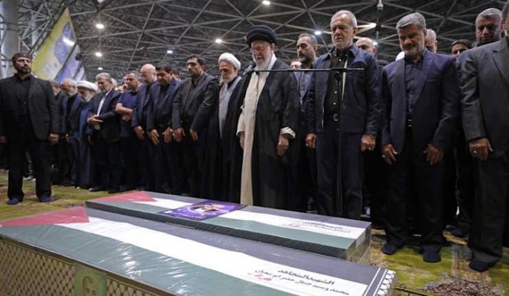 Le Leader de la Révolution islamique, l'Ayatollah Sayed Ali Khamenei, a dirigé la prière funéraire du chef du bureau politique du Hamas, Ismaïl Haniyeh, et de son garde du corps qui ont été assassinés suite à une frappe israélienne contre Téhéran, le mercredi 31 juillet.