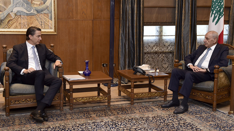 L'émissaire américain Amos Hochstein rencontre Nabih Berry, chef du Parlement libanais, à Beyrouth le 14 août.